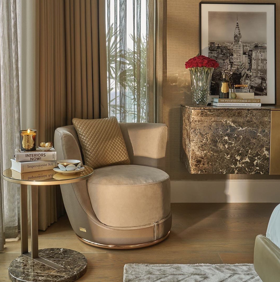 This five bedroom penthouse in one palm has been designed with impeccably detailed interior scheme, using specialist joinery and wall finishes, alongside bespoke furnishing and decorative lighting.